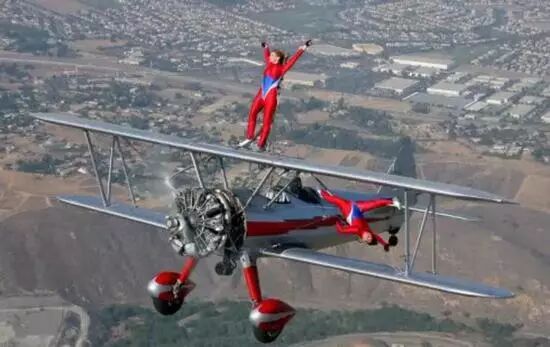 古典的双翼机,为空中杂技表演提供了较大的余地。