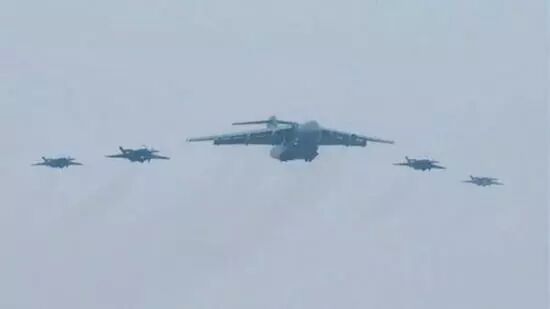 飞机、大飞机、喷射彩虹的大飞机 稍有常识的人都知道,前方顶着盘子的四发“大盘鸡”,是有空中帅府之称的大型预警机——空警2000。自从服役以来,“大盘鸡”就占据了轰六雷打不动的空中梯队领队机的位置。这次阅兵也应该不例外——这次演练的画面也说明了这一点(当然,谁能抢走它的位置,这个话题军迷们可是翘首以盼第四个20呢)。而紧随其后拉着彩色尾烟的护航队伍,是空军八一飞行表演队。那么,我们也可以确认,新中国成立70周年大庆的盛大的阅兵式上,被称为蓝天仪仗队的空军八一飞行表演队将再一次拱卫着领队机带领飞行编队飞过天安门广场上空。